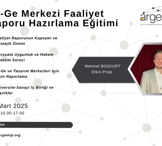 27 Mart 2025 Perşembe günü gerçekleşecek "Ar-Ge Merkezi Faaliyet Raporu Hazırlama Eğitimi", faaliyet raporlarının kapsamlı ve mevzuata uygun şekilde hazırlanmasına yönelik önemli bilgiler sunacaktır. Eğitimde, mevzuat açısından gereklilikler, hakem denetim süreçleri ve rapor hazırlığında dikkat edilmesi gereken kritik noktalar ele alınacaktır.