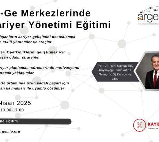 Ar-Ge Merkezlerinde Kariyer Yönetimi eğitimimize kayıt için son günler! Bu eğitim, Ar-Ge ekiplerinizin kariyer gelişimini destekleyecek ve liderlik yetkinliklerini artırmanızı sağlayacak stratejileri sizlere sunacak. Alanında uzman Prof. Dr. C. Ruhi Kaykayoğlu tarafından verilecek bu eğitimi kaçırmayın!