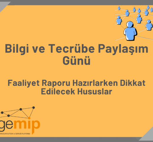 Bu doğrultuda ARGEMİP olarak faaliyet raporu hazırlanması konusunda aşağıdaki başlıklarda dikkat edilecek hususlarla ilgili online Tecrübe ve Bilgi Paylaşım Günü düzenlenmesi planlanmaktadır.