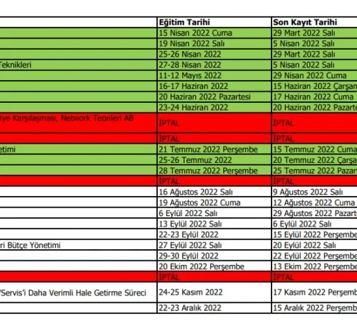 2022 yılı içerisinde gerçekleştirilmesi planlanan eğitimler için Eğitim Planı Listesi açıklanmıştır.