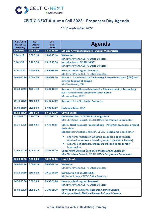 CELTIC-NEXT Bottom-up Call - Autumn 2022 Information Brief and Preparation of Proposers DayCELTIC-NEXT Bottom-up Call - Autumn 2022 Information Brief and Preparation of Proposers Day
