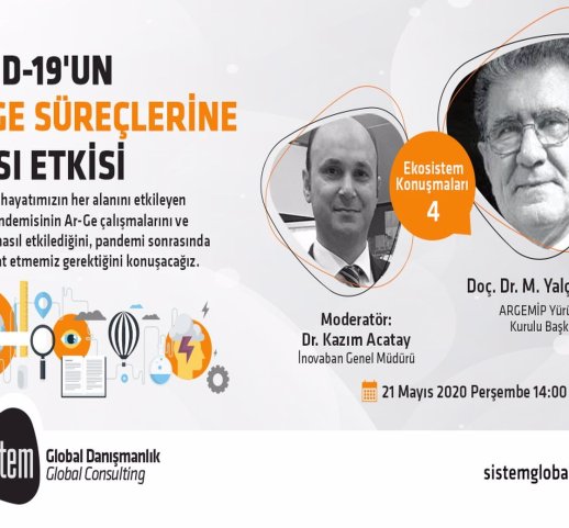 Sistem Global ekosistem konuşmalarının dördüncüsine konuk olarak katılacak ARGEMİP Yürütme Kurulu Başkanı Doç. Dr. M. Yalçın Tanes, ''Covid-19'un Ar-Ge Süreçlerine Olası Etkisi'' konusunda görüşlerini bildirecektir.